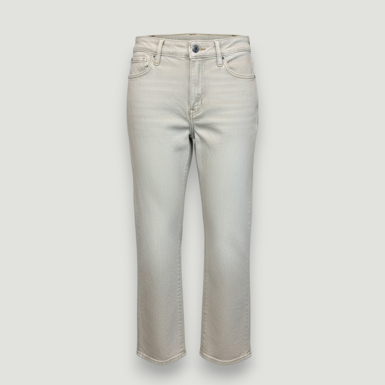 Blugi Guess damă crem, cu croială dreaptă și talie medie. Versatili, confortabili și ușor de asortat pentru orice stil.